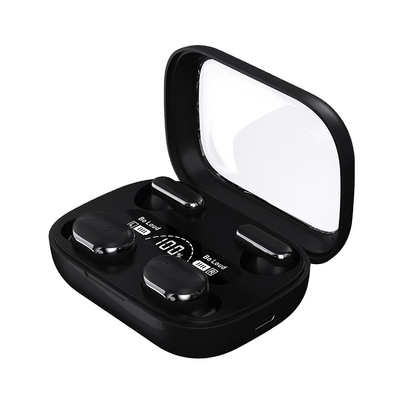 Pro13 Écouteurs Bluetooth Sans Fil V5.3 avec un boîtier de charge affichant le niveau de batterie LED