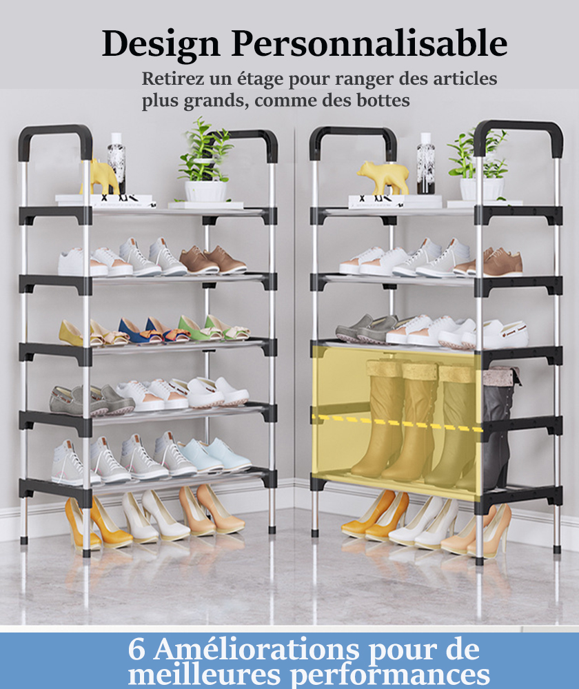 Râtelier à chaussures multifonctionnel, autoportant, pliable en acier inoxydable