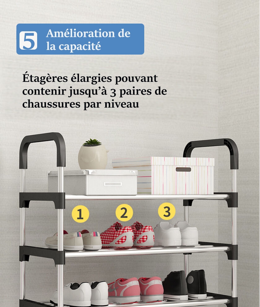| Organisateur de chaussures à 7 niveaux | Étagère à chaussures 9 niveaux | Étagère à chaussures 5 niveaux | Étagère à chaussures 5 niveaux en métal |