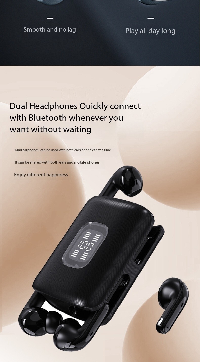 Deux écouteurs, connexion rapide Bluetooth à volonté, pas besoin d'attendre, deux écouteurs, peuvent être utilisés avec les deux oreilles, peuvent être utilisés avec une seule oreille, peuvent être partagés, peuvent être utilisés avec les deux oreilles et deux téléphones mobiles pour profiter d'un bonheur différent