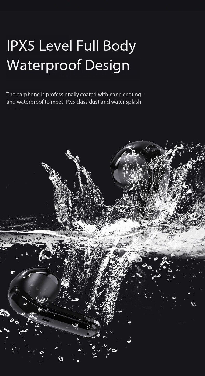 Conception étanche IPX5 sur tout le corps, les écouteurs sont technologiquement et structurés étanches pour répondre à la résistance IPX5 à la poussière et aux éclaboussures d'eau.