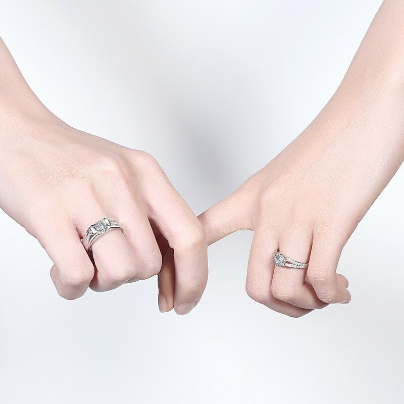Bague argent élégante et impeccable bague de couple ouverte alliance, cadeau Saint Valentin