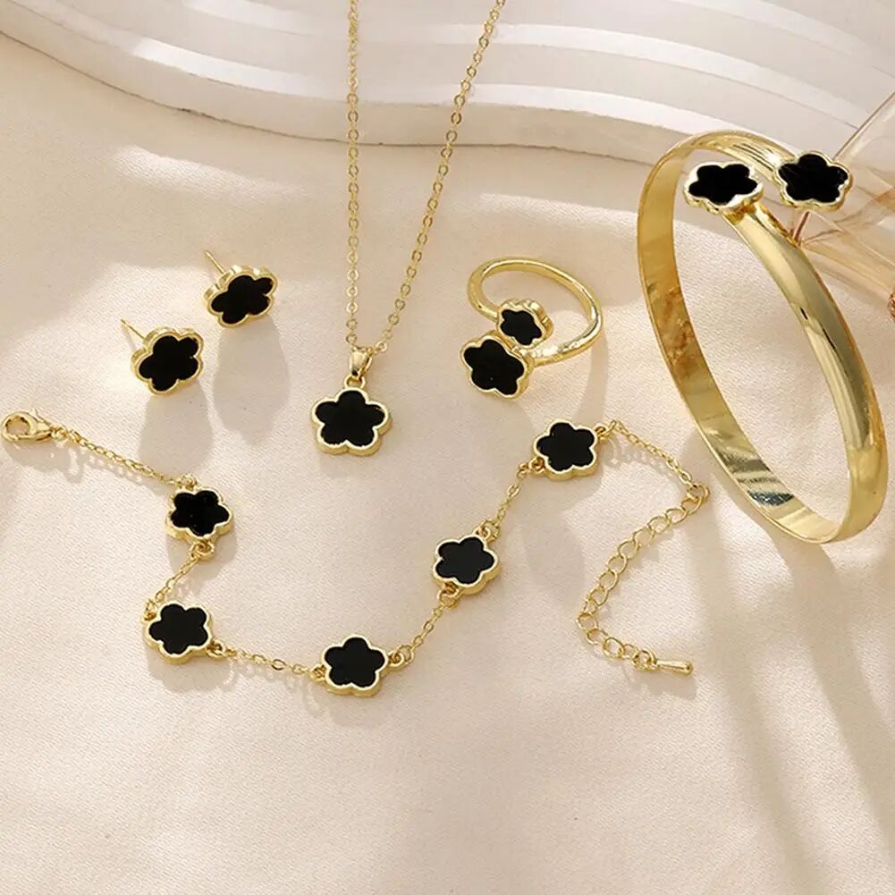 1 pc collier + 2 pc bracelet + 1 paire de boucles d'oreilles + bague 1pc