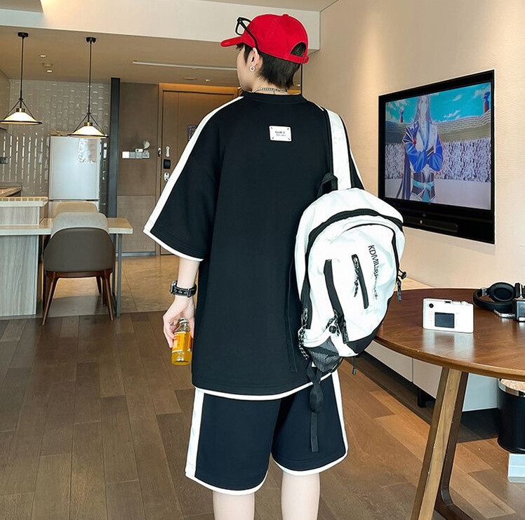 1X (noir) Ensemble de sport décontracté d'été pour jeunes , t-shirt et short - 2 pièces