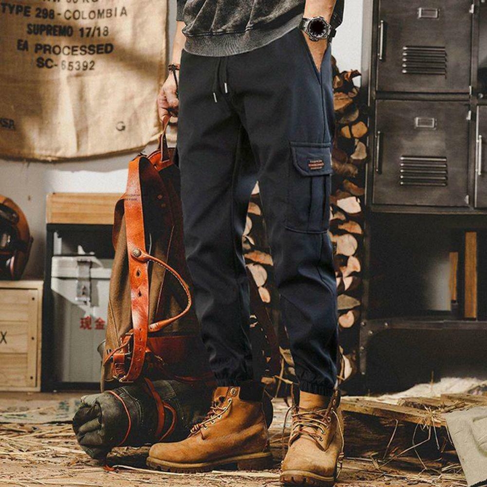 Men's stretch-waist cargo pants, versatile for a street style look, multi-pocket design, suitable for spring and autumn wear.