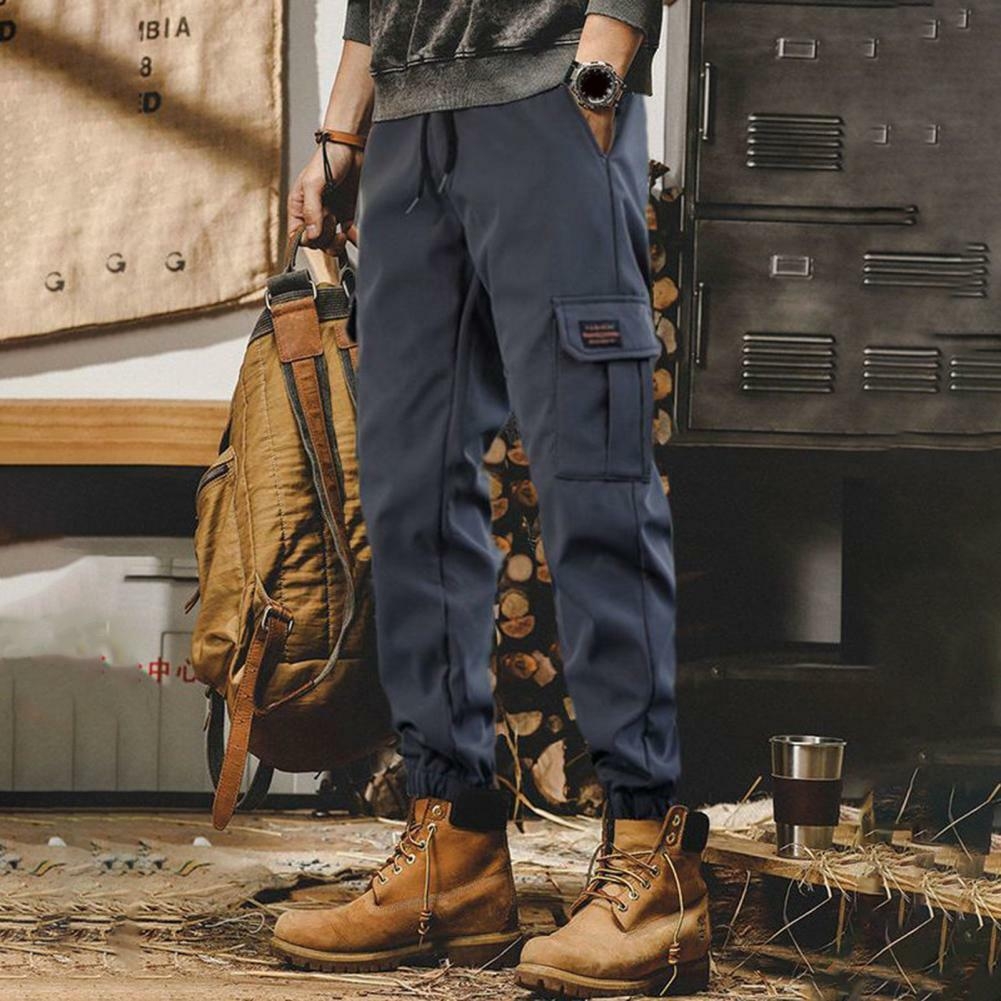 Men's stretch-waist cargo pants, versatile for a street style look, multi-pocket design, suitable for spring and autumn wear.