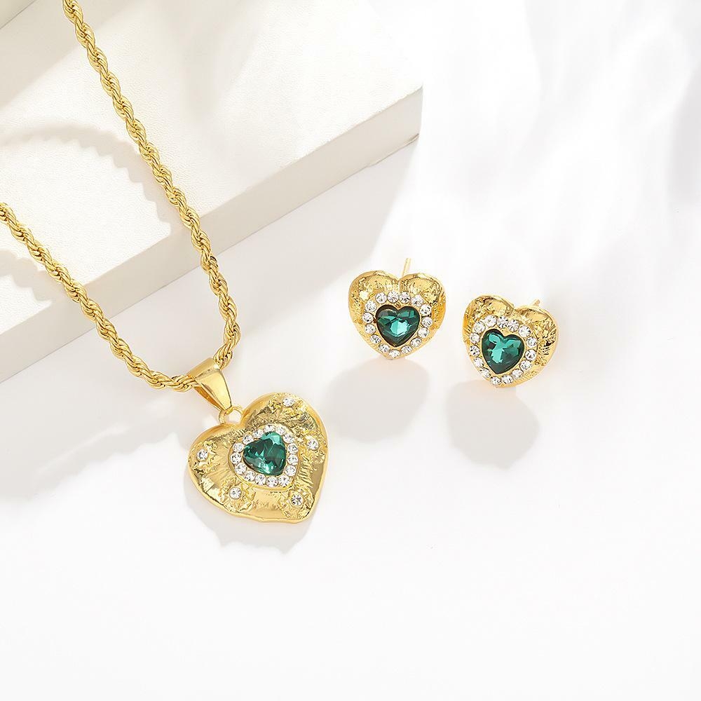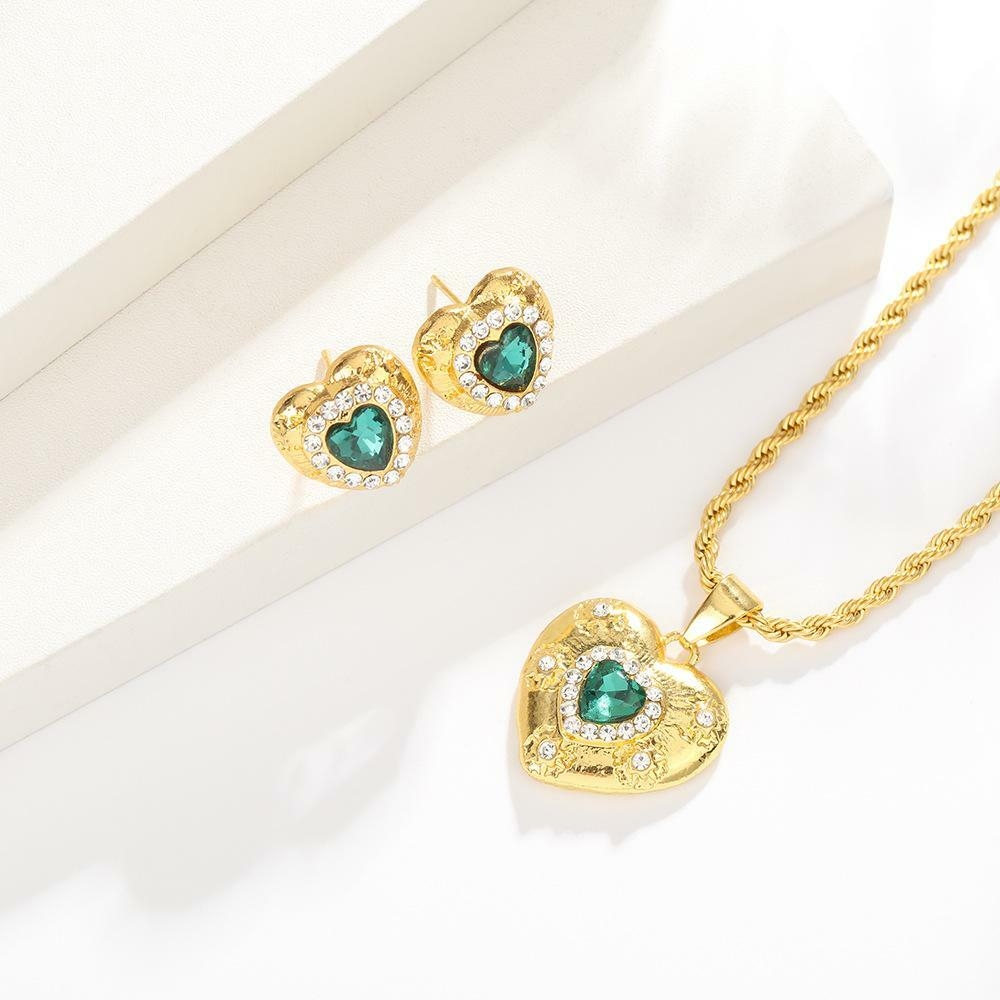 Principales caractéristiquesModèle: Amour/goutte d'eau/clocheTechnologie de traitement: incrustation de diamantCouleur: Verre vert Pêche Cœur Set 2 piècesClassification de style: Frais et douxCatégorie de produit: SetMatériau du pendentif: AlliageEnsemble combinaison: boucles d'oreilles + colliersCatégorie d'élément populaire: Naturel