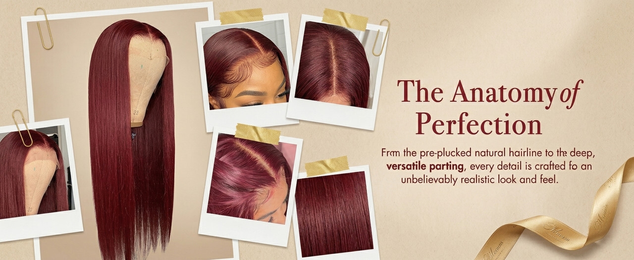 Principales caractéristiquesMatériau des cheveux : Soie à haute températureTexture des cheveux : LisseCouleur des cheveux : Rouge vinDensité : Densité 180 %Longueur : 16 poucesDécoloration/teinture possible : OuiCouleur de la dentelle : Transparent haute définition, fusion parfaite, polyvalentTaille de la coiffe : Taille moyenne avec sangles réglablesHairstyle du chig-non : Cheveux longs lisses parted au milieu