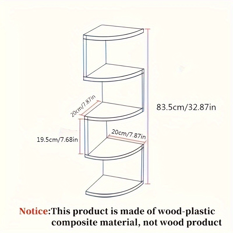 This corner shelf provides ample storage space for books, photo frames, decorations, ornaments, potted plants, and other household items. Product Name: Corner Shelf/Corner Rack/Corner Stand/Corner Shelf/Corner Storage Rack Material: Particleboard, MDF Suitable Location: Corner Package List: 1 x Corner Shelf Note: Corner shelf is sold only; other decorations are not included. This corner shelf can be placed in any small corner, making it convenient to store small items and perfectly blending into your home environment. Maximize corner space in your living room, bedroom, home office, kitchen, balcony, or study. This corner shelf helps you optimize the use of unused corner space. It can hold decorations, bathroom supplies, photo frames, books, and more. This corner shelf fits snugly against the wall, making it an ideal solution for adding extra space in living rooms, bedrooms, and small apartments.