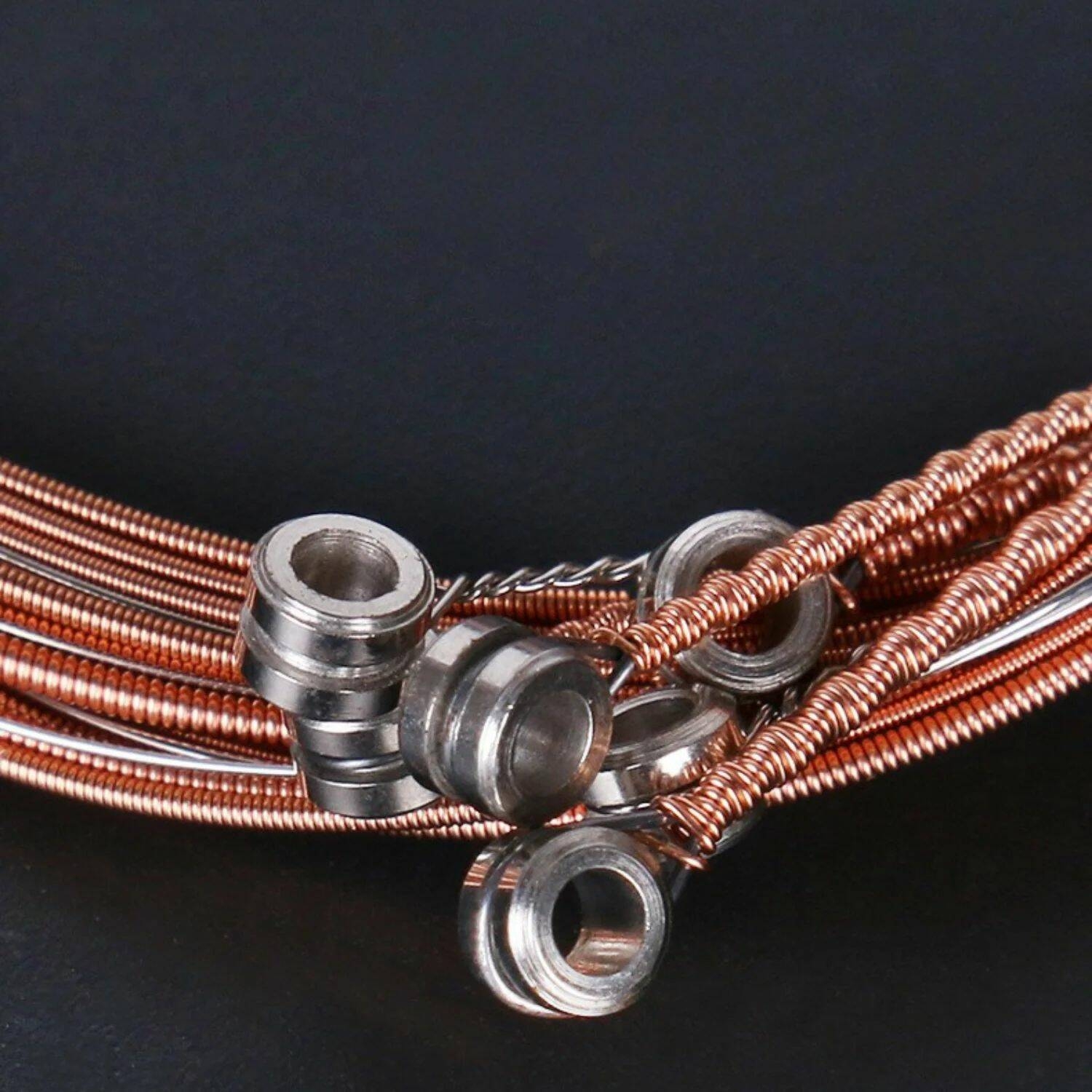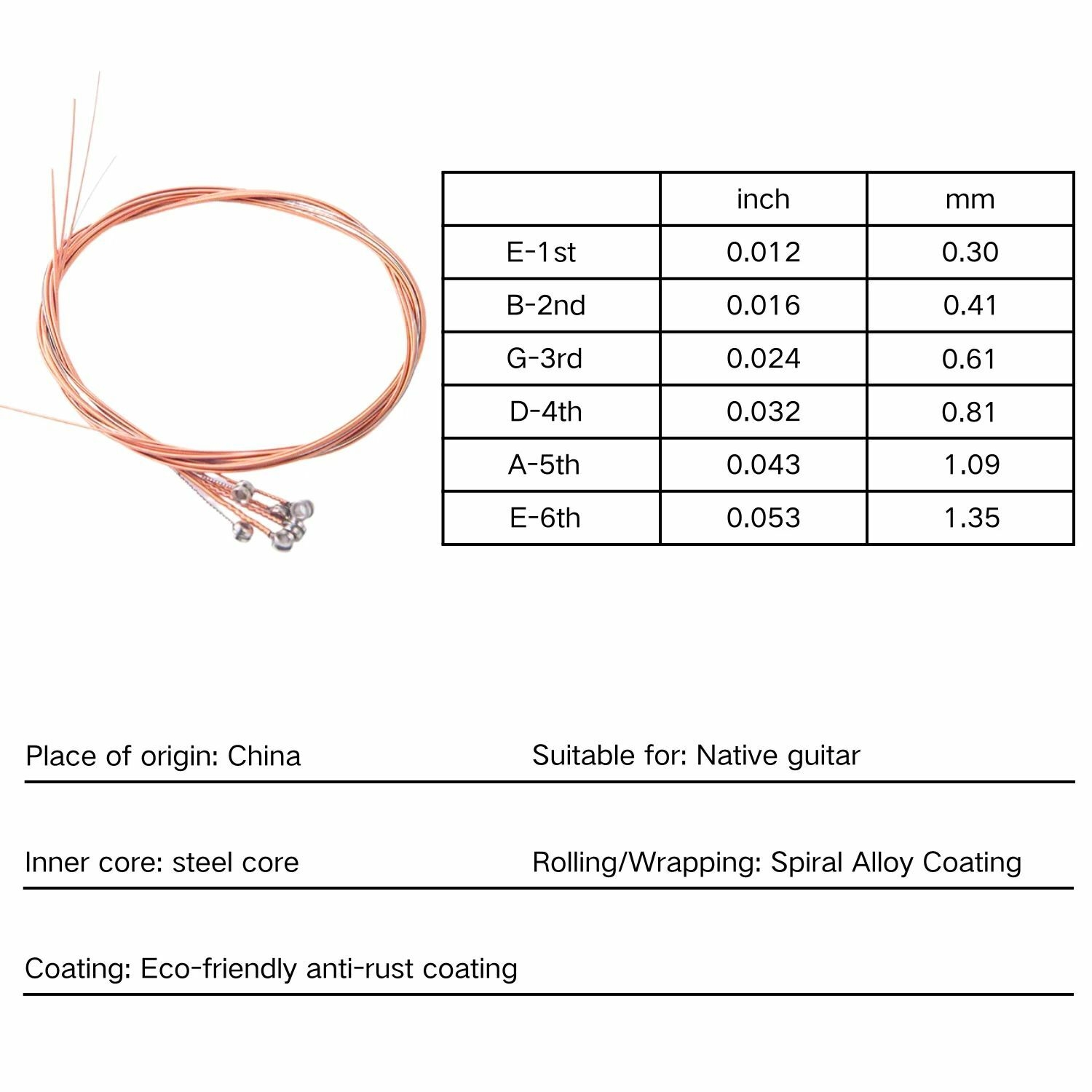 1, matériau des cordes de guitare: laiton de haute qualité, bonne ténacité, dur à casser, revêtement anti-oxydation protège considérablement les cordes contre la corrosion commune et prolonge la durée de vie