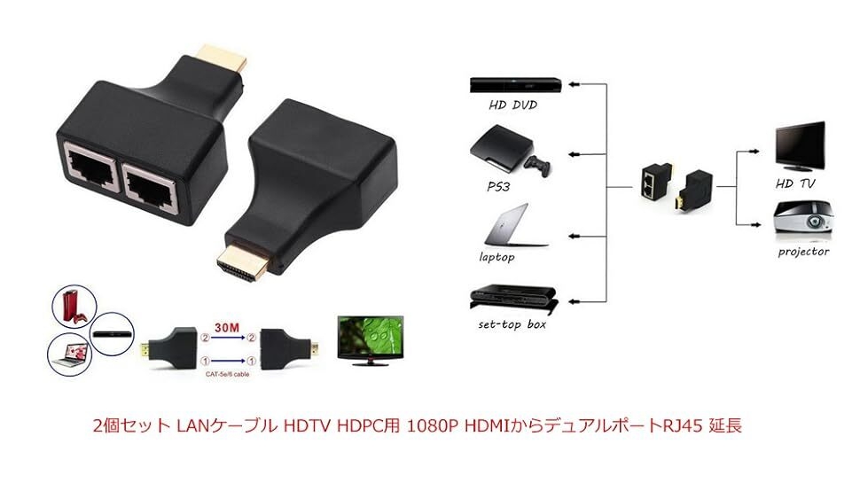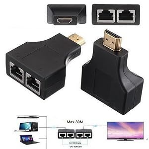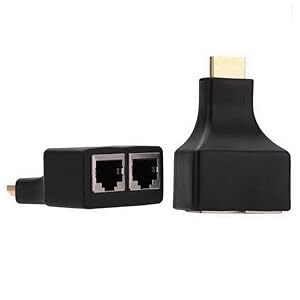 Lot de 2 câbles LAN pour TVHD et PC HD 1080p HDMI vers double port RJ45, rallonge réseau HDMI vers RJ45, interface câble réseau Cat 5e/6, adaptateur et câble pour TVHD 3D, longueur 30 m.