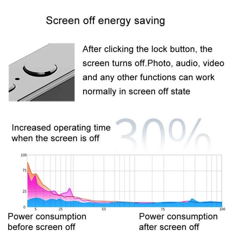 9. Normal photo, video and audio recording in off-screen state, energy-saving and long-lasting battery life