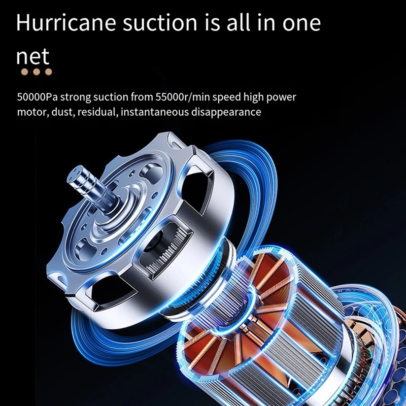 Description : Nos aspirateurs sans fil sont parfaits pour nettoyer les tissus d'ameublement et les petits espaces. Ils offrent une efficacité polyvalente et s'adaptent à divers besoins de nettoyage. Grâce à une puissance d'aspiration de 50 000 Pa, la poussière et les débris ne se cachent plus. Nettoie en profondeur et laisse vos sols impeccables. Des tapis aux sols durs, en passant par les canapés et les voitures, nos aspirateurs offrent une aspiration puissante pour un nettoyage en profondeur dans chaque pièce de votre maison. Caractéristiques : 1. [Aspirateur sans fil ultra-léger et nettoyage facile] Cet aspirateur à main est facile à utiliser pour les enfants et les personnes âgées. Facile à soulever d'une seule main, il nettoie facilement les zones difficiles d'accès comme les plafonds, les climatiseurs et les moustiquaires. 2. [Aspiration puissante de 50 000 Pa pour un dépoussiérage efficace] Son aspiration puissante capture efficacement les cheveux, la poussière, le sable et autres débris ! La poussière et les débris ne se cachent plus. Nettoie en profondeur et laisse vos sols impeccables.