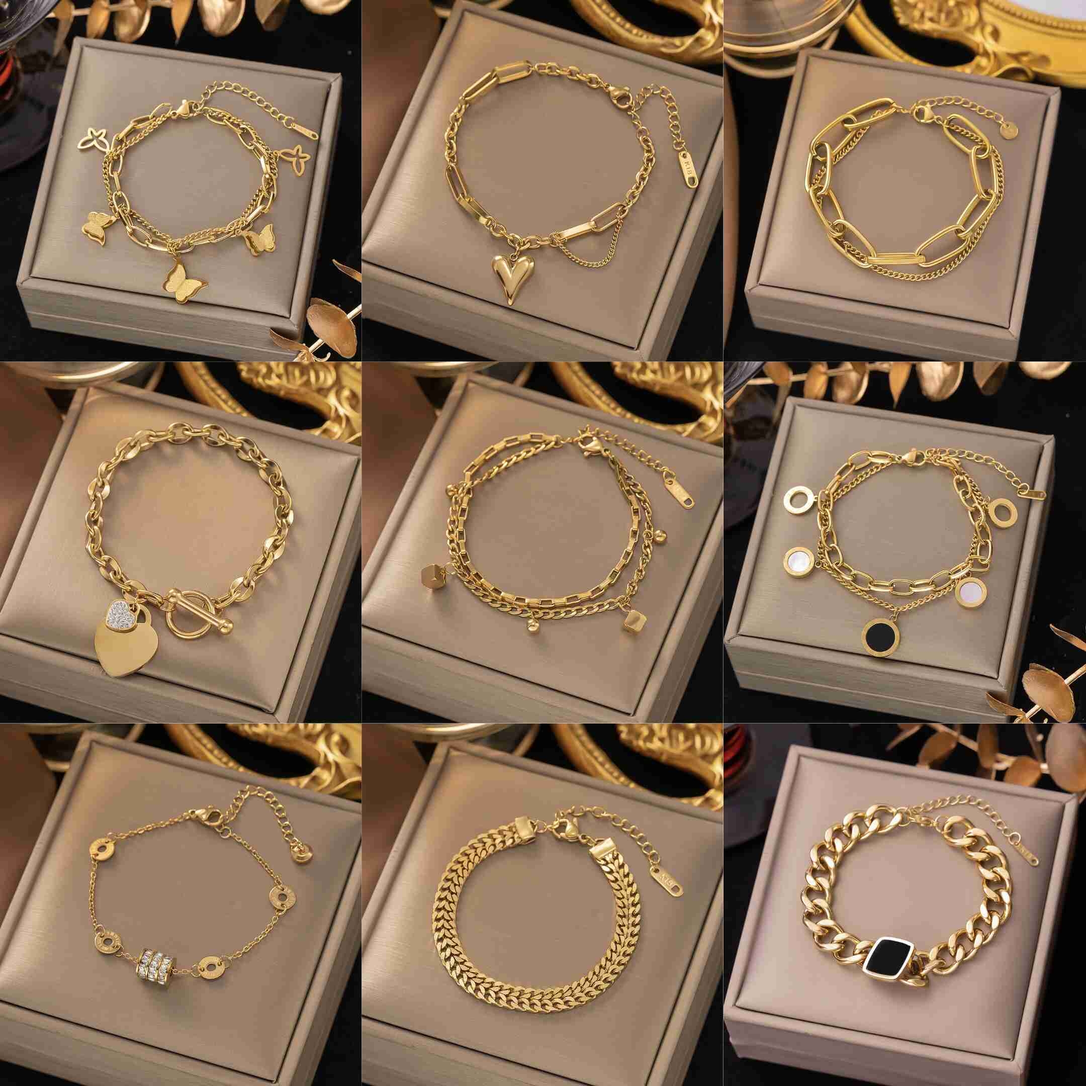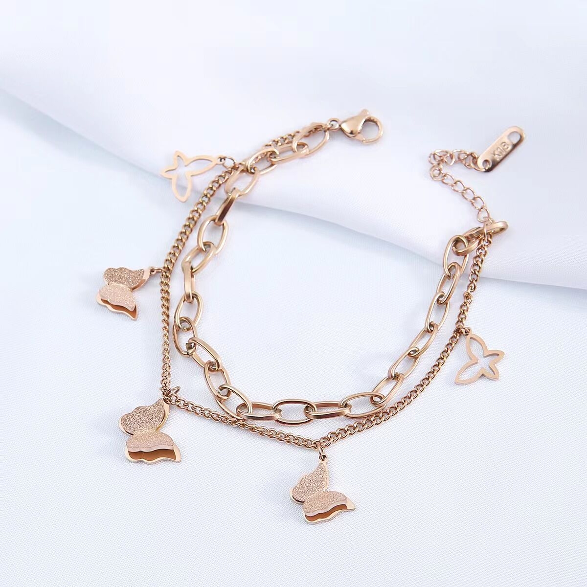 Bracelet chaîne double plaqué or 18 carats avec pendentifs papillons