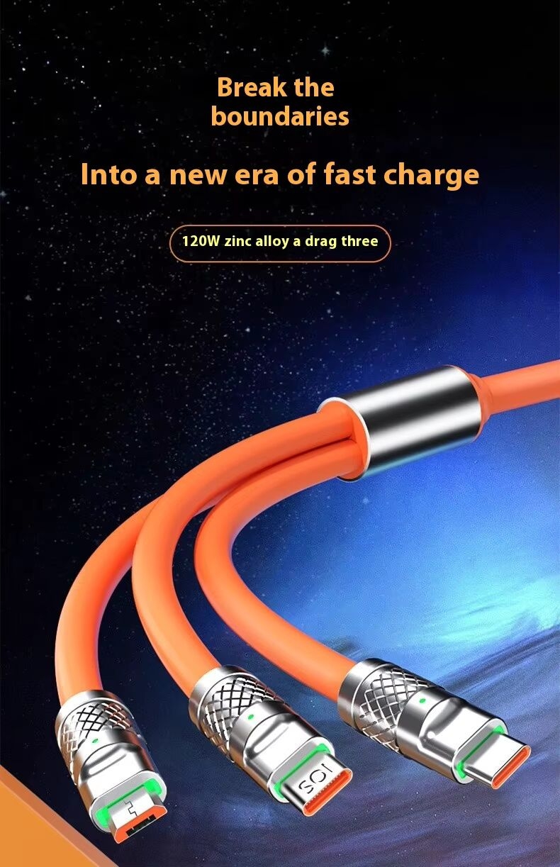 Matériau ultra-résistant et incassable : Ce câble de charge multiple est fabriqué en silicone liquide d'une douceur surprenante au toucher. Il offre une durabilité et une flexibilité exceptionnelles, ayant résisté à plus de 40 000 tests de flexion. Tous les connecteurs sont en alliage de zinc, ce qui augmente leur résistance de 700 %.
