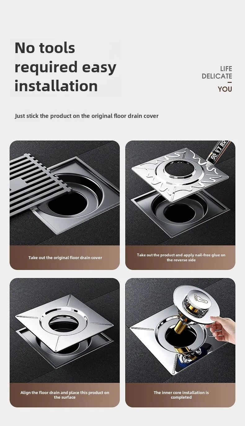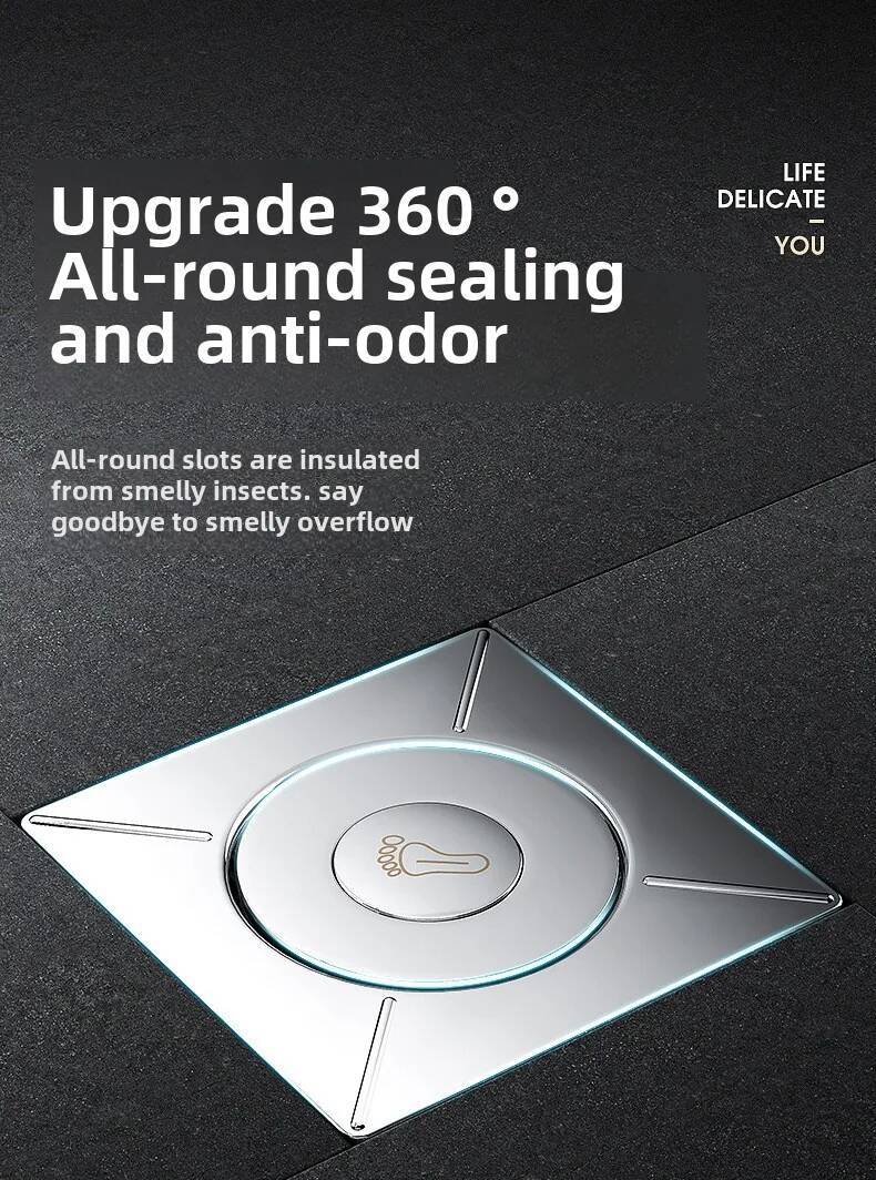 ✔ Le siphon de sol carré permet une évacuation efficace de l'eau, même sous forte pression.