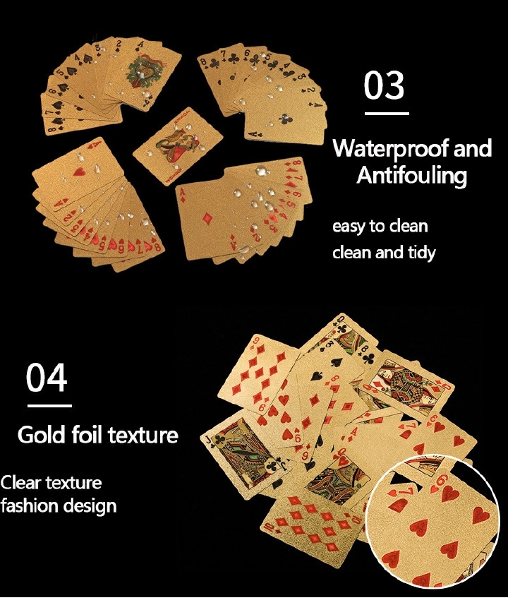 1. Lisse et brillant: contrairement au poker ordinaire, cette carte dispose d’un fond d’or et d’argent frais et un motif coloré qui le rend lisse et brillant.