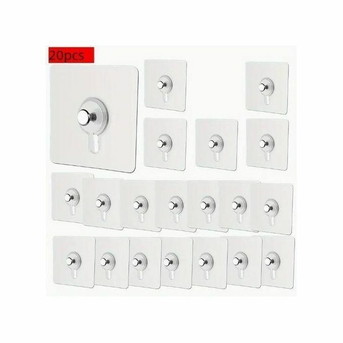 Quantité : Vous recevrez 20 crochets muraux de 5,8 × 5,8 × 1 cm. Ces crochets adhésifs sont transparents, vous permettant ainsi d'accrocher des cadres ou des décorations.