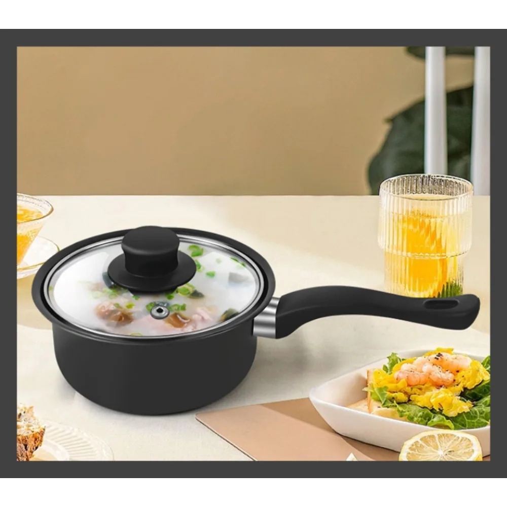 Concept design : Cet ensemble de 13 ustensiles de cuisine est simple, compact et raffiné. Il adopte la forme la plus populaire du secteur. Simple et élégant, il est idéal pour les sautés quotidiens, les grillades de steaks ou les soupes. 【Variété de casseroles】Les ustensiles de cuisine comprennent un pot à lait de 16 cm, une marmite à soupe de 22 cm, une friteuse de 22 cm, un faitout de 18 cm et six cuillères, tous disponibles dans des tailles adaptées à vos besoins. Le couvercle transparent vous permet de visualiser la cuisson des aliments à tout moment et de conserver leur saveur. Le couvercle en verre trempé transparent avec trous de vapeur permet de visualiser la cuisson et de contrôler facilement la chaleur. La cuisson de la soupe et de la friture est assurée par un ensemble de cuillères, passoires et pelles. La poignée entièrement recouverte assure une prise en main confortable, une isolation thermique et une protection anti-brûlure.