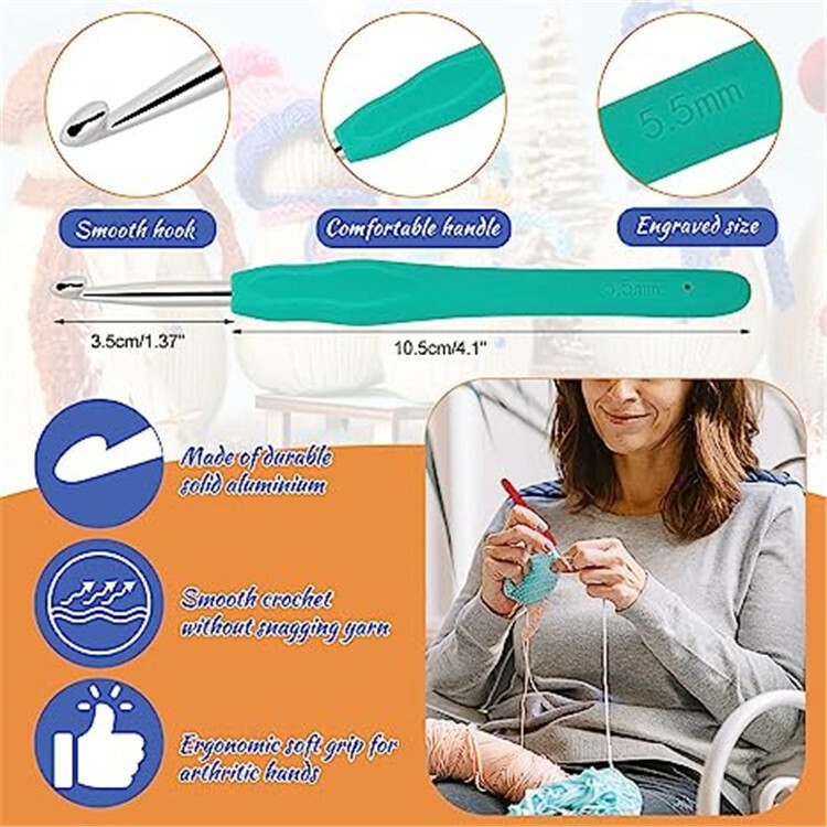 Crochets à crochet avec poignées souples : ces 12 crochets sont parfaits pour les débutants comme pour les crocheteurs expérimentés. Ces aiguilles à crochet sont conçues avec une surface lisse et une surface en caoutchouc.