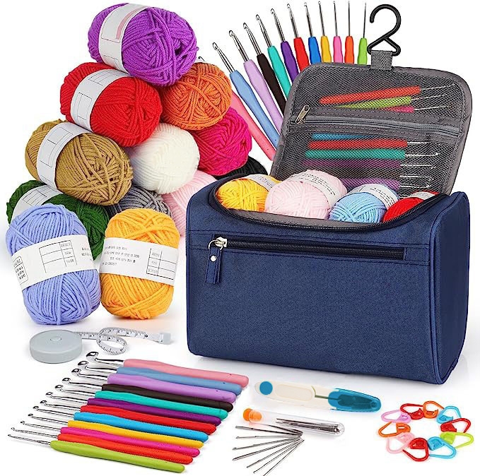 Ensemble de crochet de 46 pièces pour débutants, outils de tricot, sac de rangement suspendu avec accessoires de fil à crocheter