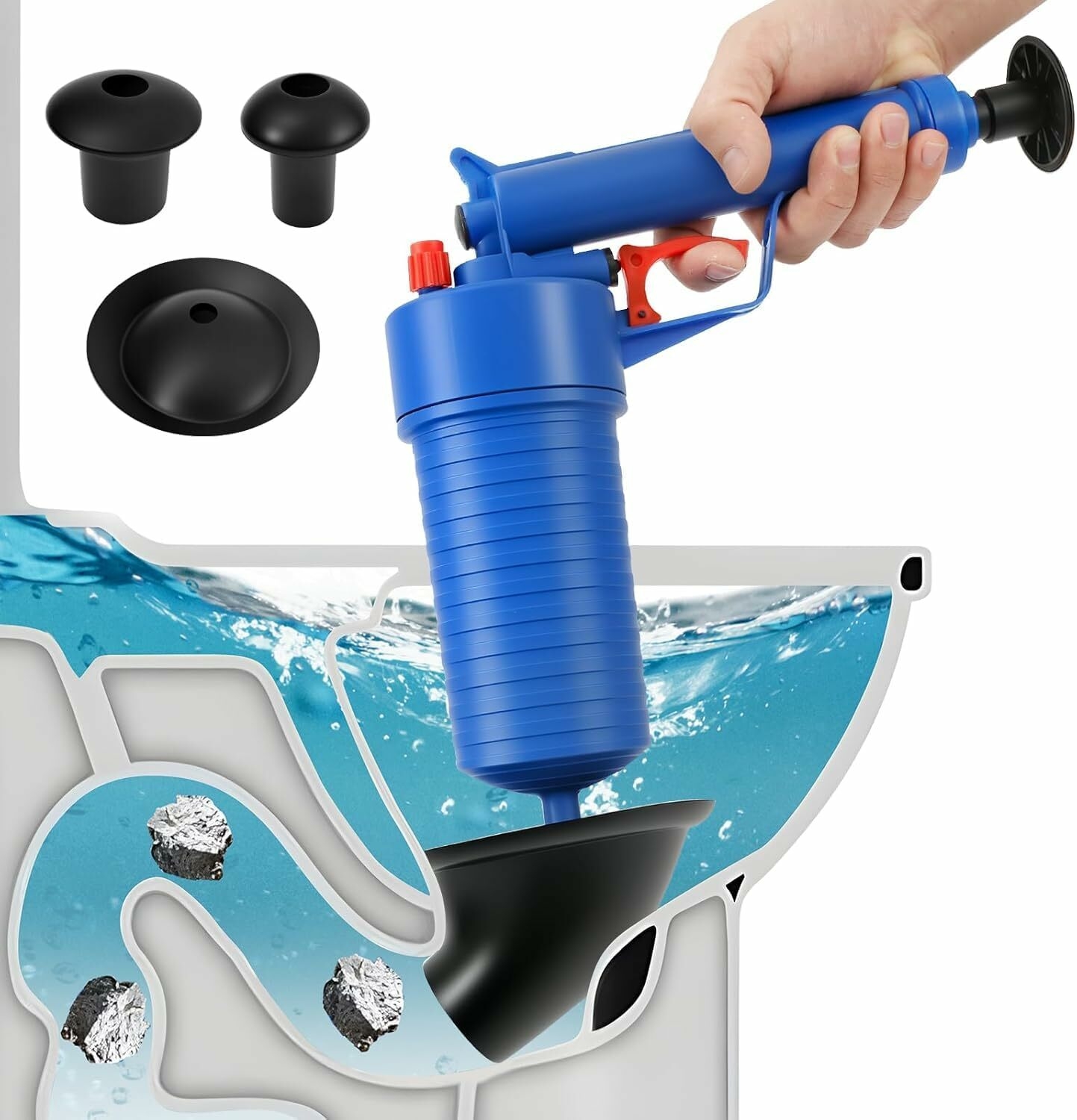 ✔ Utilise le principe de débouchage par pression d'air pour déboucher rapidement les canalisations et les déboucher efficacement.