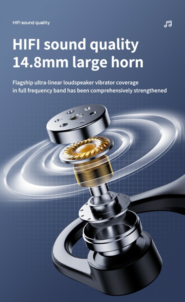 3. Qualité sonore HIFI, haut-parleur de 14,8 mm, vibrateur de haut-parleur ultra-linéaire couvrant les basses fréquences, les fréquences intermédiaires, les hautes fréquences et entièrement renforcé.