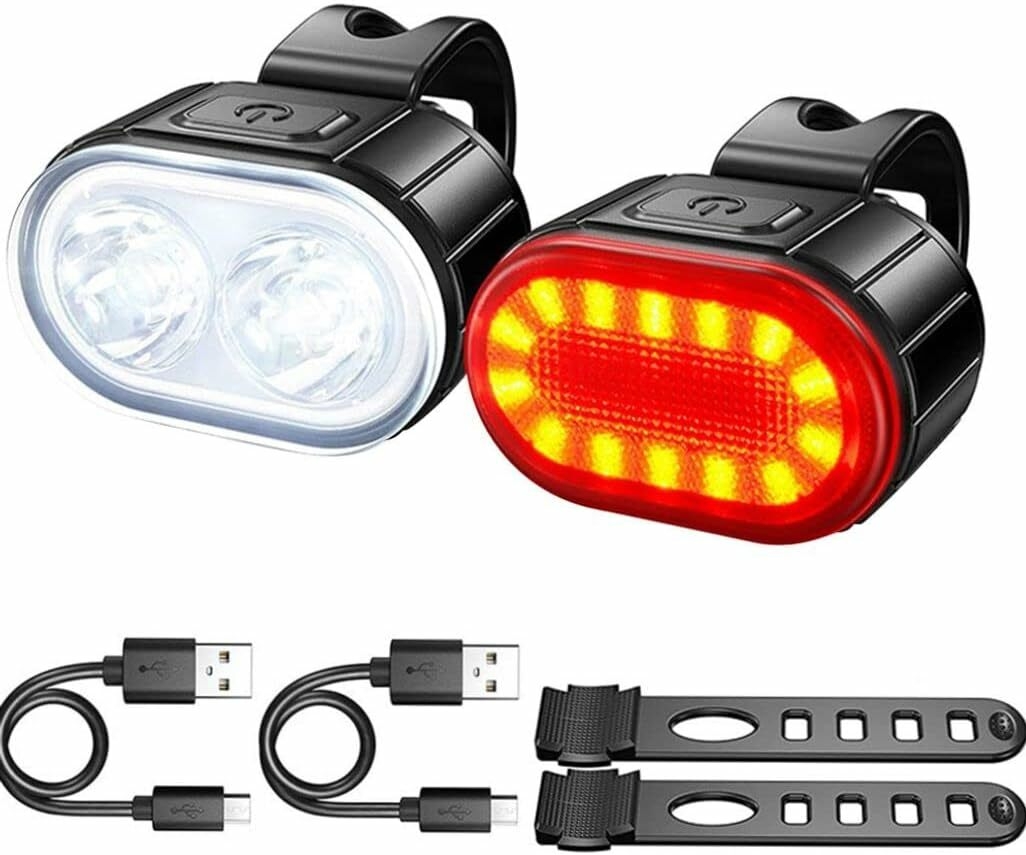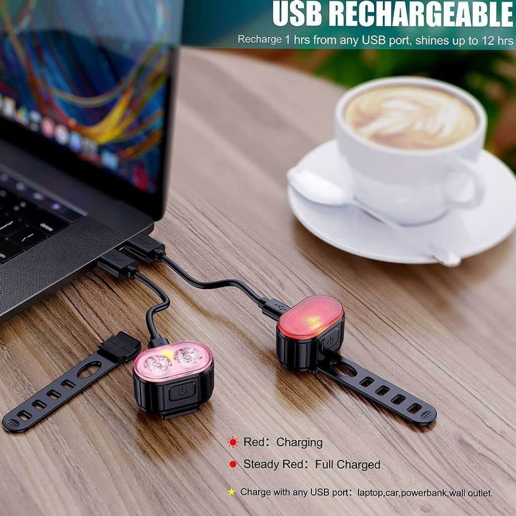 Cet éclairage de vélo est équipé d'une batterie au lithium rechargeable intégrée qui se recharge complètement en seulement une heure. Il est équipé d'un interrupteur marche/arrêt à une touche et propose quatre modes d'éclairage différents.