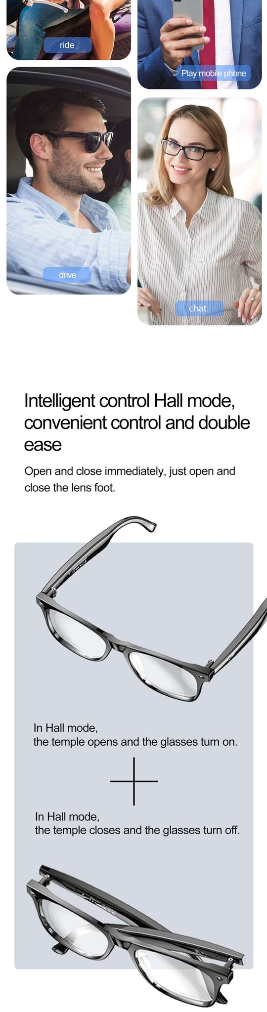 - Design discret et élégant : Les lunettes sont conçues pour être confortables et se fondre dans votre style, cachant une technologie de pointe derrière une apparence classique.