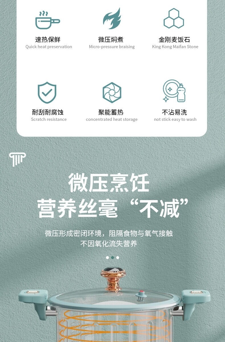 【Cuisson rapide et efficace】Fabriqué en fonte fine, il conduit la chaleur rapidement et uniformément. Grâce à sa conception à micro-pression, cet autocuiseur cuit les aliments plus rapidement et plus délicieusement.