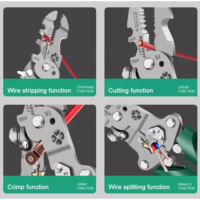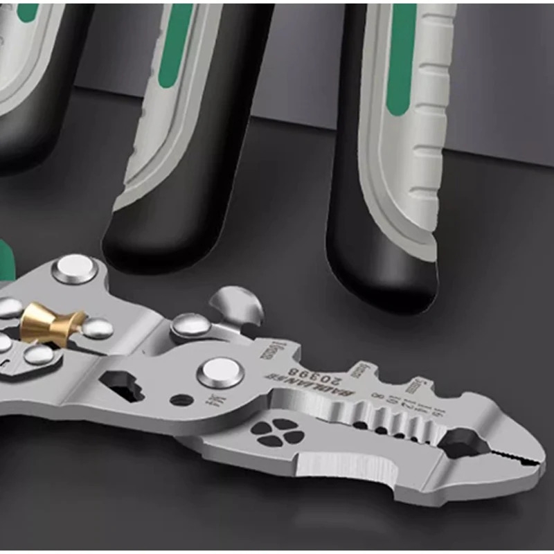Pince à dénuder multifonction pliable 16 en 1, coupe-fil et sertissage Description : Fabriquée en alliage d'acier de haute qualité, elle bénéficie d'un traitement thermique complet, d'une dureté élevée, d'une lame tranchante et d'une grande résistance au cisaillement, pour une robustesse et une durabilité accrues. La surface finement polie et enduite d'huile antirouille noircie est esthétique et résistante à la rouille. La poignée revêtue de PVC offre une prise en main confortable et une utilisation longue durée. Cette pince pliante multifonction 16 en 1 est conçue pour la précision et permet de dénuder les fils avec précision sans endommager l'âme du fil. Qu'il s'agisse de fils fins ou de câbles épais, cet outil assure un dénudage propre et sûr. Cette pince à dénuder multifonction 16 en 1, comprenant le dénudage, la coupe et le sertissage, est un outil indispensable pour les électriciens et les bricoleurs. Dénudez facilement les fils de 0,08 mm à 1,6 mm et disposez de plusieurs trous de dénudage standard pour un dénudage précis sans endommager l'âme du fil. Dénudez, coupez, sertissez et enroulez facilement les fils, le tout dans un design compact pour un câblage plus facile et plus efficace. Caractéristiques : 1. [Dénudage précis sans endommager l'âme du fil] Cette pince pliante multifonction 16 en 1 est conçue pour la précision, vous permettant de dénuder les fils avec précision sans endommager l'âme du fil. Qu'il s'agisse de fils fins ou de câbles plus épais, cet outil assure un dénudage propre et sûr. Sa conception multifonctionnelle, incluant le dénudage, la coupe et le sertissage, est un outil indispensable pour les électriciens et les bricoleurs. 2. [Conception innovante et conviviale] Cette pince à dénuder rapide est dotée d'un mécanisme de verrouillage à changement rapide qui facilite le remplacement des accessoires tout en empêchant tout glissement accidentel pendant l'utilisation, améliorant ainsi la sécurité. 3. [Haute efficacité de coupe] Les lames de la pince à dénuder sont finement affûtées pour une coupe précise et une efficacité de travail accrue. 4. [Portable et pliable] Cette pince à dénuder automatique multifonction est légère et peut être utilisée d'une seule main. La pince à dénuder automatique multifonction est facile à utiliser et ne nécessite aucun réglage de la position du trou de fil en fonction du diamètre de la pièce. Le diamètre du fil peut être ajusté en fonction de la résistance requise. Son design pliable facilite le transport et le rangement de cette pince à dénuder, idéale pour une utilisation en déplacement ou dans une boîte à outils. 5. [Prise en main confortable et raffinée] La poignée antidérapante, texturée et ergonomique, offre une prise en main confortable et réduit la fatigue. C'est un outil indispensable pour les électriciens, les techniciens de maintenance et les particuliers. Caractéristiques : Nom : Pince à dénuder pliable 16 en 1 Couleur : Vert Matériau : Acier à haute teneur en carbone Forme : Pointue Dimensions : 22 x 5,5 x 1,5 cm Poids : 0,2 kg Contenu : 1 pince à dénuder pliable