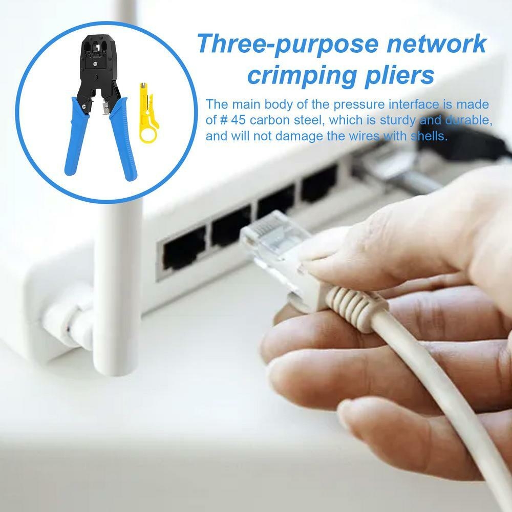 Ce crimpleur Ethernet est un outil de choix pour les professionnels et les amateurs de bricolage, offrant une fonctionnalité 3 en 1 pour le crimpage, le dépeçage et la coupe des câbles. Conçu avec un manche en ABS anti-dérapant, il assure une prise en main confortable et une utilisation sûre. Le poids de 320g et la construction en acier 45# et acier au carbone garantissent une durabilité et une performance fiable. Le crimpleur RJ45 est idéal pour une variété de scénarios, allant de la maintenance de réseau domestique à des installations professionnelles. La conception intuitive permet une utilisation facile, avec des outils de dépeçage et de coupe intégrés pour une gestion efficace des câbles. Ce crimpleur de câble Ethernet est conçu pour gérer les câbles Ethernet, RJ11, RJ12, et RJ45, offrant ainsi une solution polyvalente pour les besoins de crimpage. La performance est renforcée par des outils de dépeçage précis et une coupe nette grâce à la lame en acier au carbone, assurant une qualité de travail de crimpage constante et fiable.