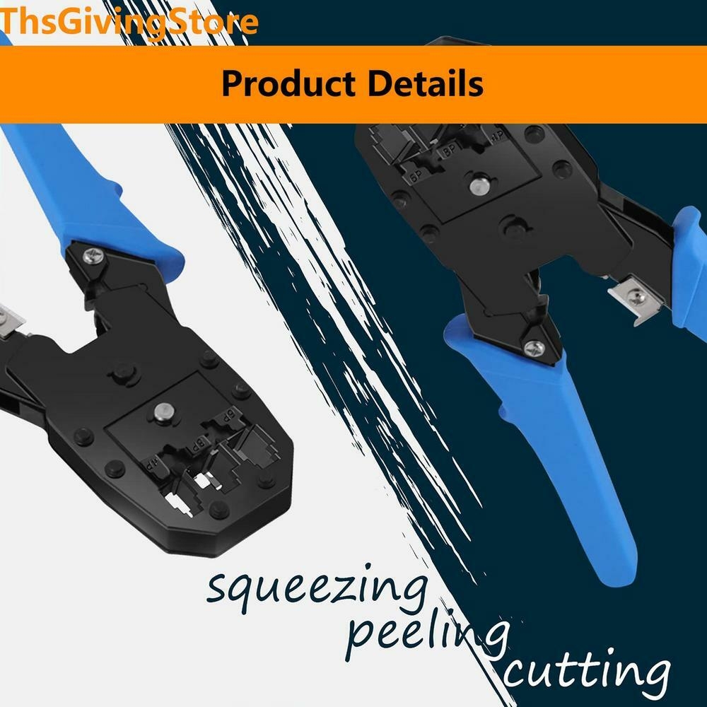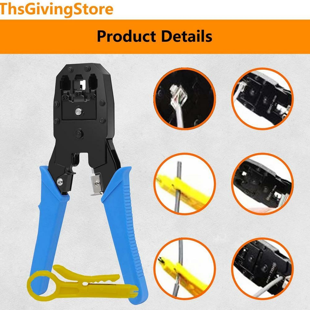 4. Outil de sertissage polyvalent : cette pince à sertir réseau peut couper, dénuder et sertir les têtes téléphoniques 4P, 6P et 8P et les têtes de câble réseau RJ11/RJ12/RJ45, ce qui la rend adaptée aux câbles à paire torsadée, Ethernet et données.