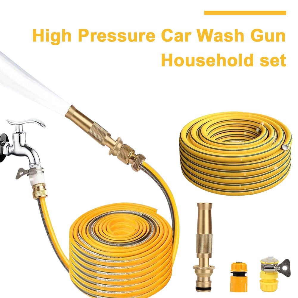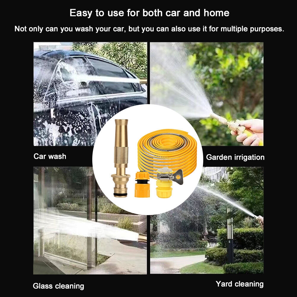 Pistolet pulvérisateur de lavage de voiture haute pression avec tuyau de 10 m, pulvérisateur de tuyau d'arrosage en métal, pistolet d'irrigation multifonctionnel pour le lavage des voituresCaractéristiques :1. Buse haute pression : découvrez la puissance de notre pistolet pulvérisateur de lavage de voiture, équipé d'un jet puissant capable de s'attaquer à tout, de la saleté tenace à l'arrosage doux du jardin, répondant à tous vos besoins de nettoyage extérieur.2. Contrôle du débit sans effort : notre pistolet à eau de jardin est doté d'une poignée en laiton pour un réglage facile du débit, avec un filetage GHT pour une fixation simple à n'importe quel tuyau d'arrosage standard de 11 à 14 mm, garantissant une configuration transparente pour vos tâches de nettoyage.3. Construction en laiton : notre lave-auto portable est construit avec une structure en laiton massif, garantissant une utilisation intensive sans rouille ni fuite, et est conçu pour durer des années sans les fissures courantes dans les pièces en plastique ou en caoutchouc.4. Fonctionnalité polyvalente : qu'il s'agisse d'arroser le jardin, de nettoyer votre véhicule, de rafraîchir l'allée, de baigner votre animal de compagnie ou de laver les terrasses, notre pulvérisateur de tuyau d'arrosage en métal est conçu pour tout faire avec efficacité et facilité.5. Fixation facile du tuyau : le pistolet d'irrigation à eau est soigneusement conçu avec une vanne d'arrêt de tuyau, ce qui le rend incroyablement facile à gérer le débit d'eau et à connecter à votre tuyau, offrant une expérience de nettoyage sans tracas.