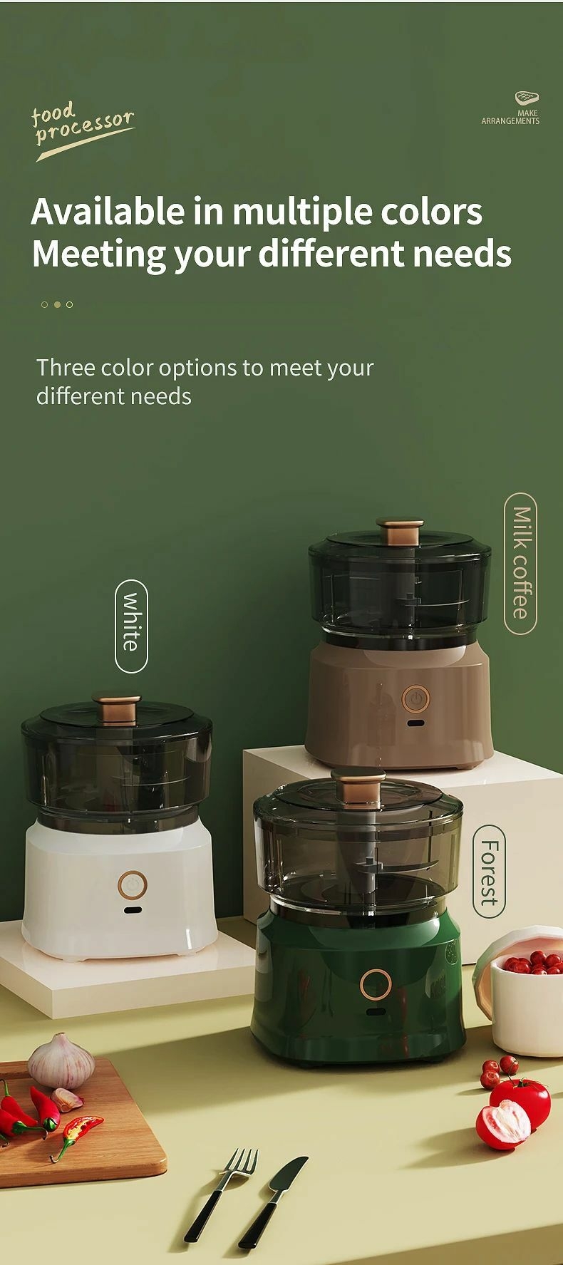 3. Liberté sans fil - Portable et pratique: dites adieu aux contraintes des fils enchevêtrés. Ce hachoir à ail tout-en-un présente un aspect compact et élégant qui vous permet de l’emmener n’importe où sans délai. Il est parfait pour ceux qui ont besoin d’une solution polyvalente et portable pour leurs besoins de préparation alimentaire.