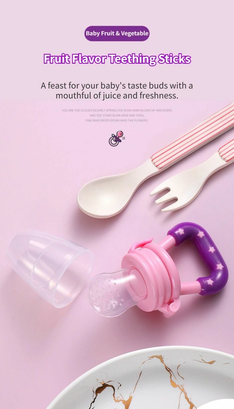 5. Bouchon de précision, scellant sans fuite de jus. Cette conception de forme de fruit de dentition le rend facile pour les bébés à tenir et à mâcher, offrant une expérience divertissante et interactive.