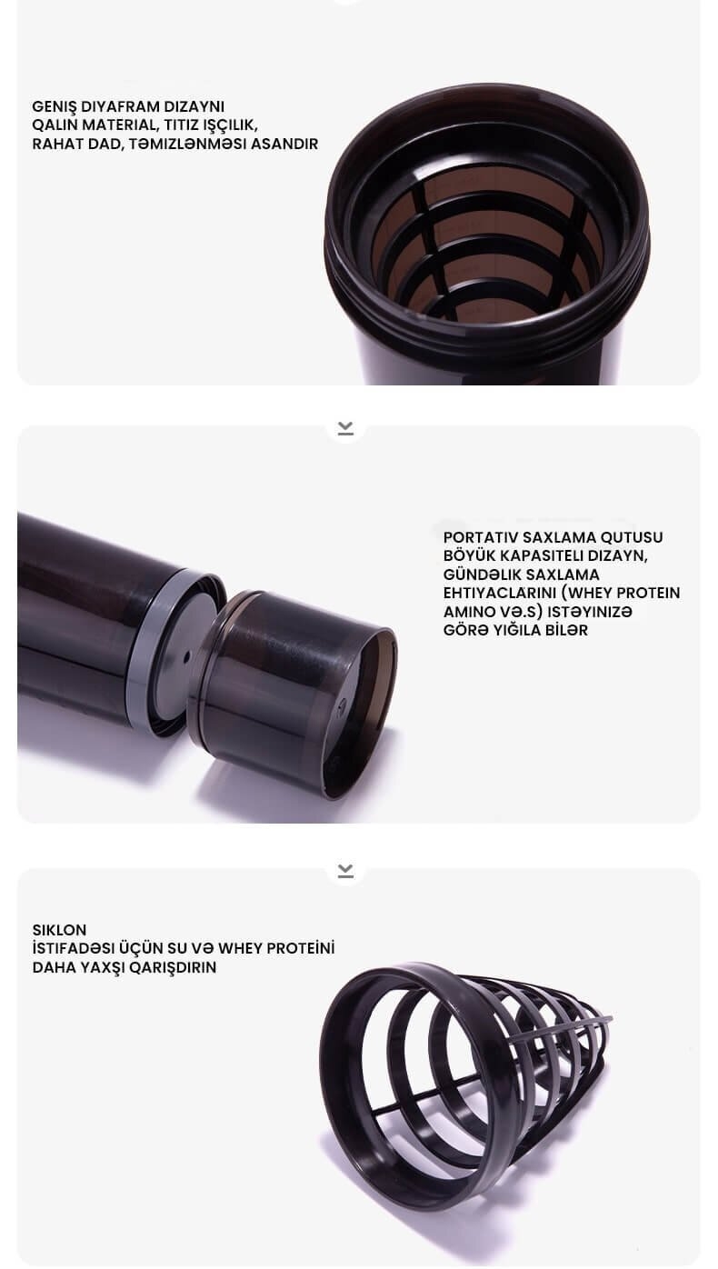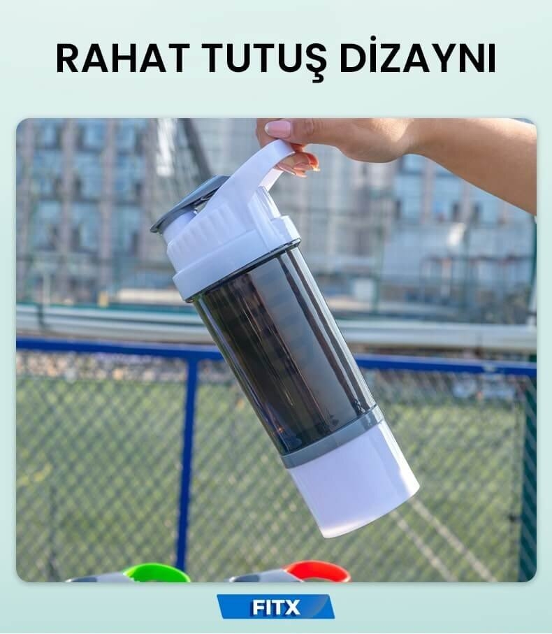 Shaker Bottle - Flacon de 500 ml est un flacon secoueur ergonomique avec un treillis cyclonique pour mélanger des boissons protéiques et d'autres boissons énergétiques. Ce flacon secoueur a une boîte sèche séparée pour transporter de la poudre de protéines et d'autres matières sèches. Les godets agités de sport sont parfaits pour les shakes protéiques, les smoothies, les boissons énergétiques, les œufs brouillés et les boissons en fibres. FUTSHUT Sport Shaker a must have pour les sports de plein air et l'entraînement de gymnastique pour rester hydraté et dynamisés. Le filet à mailles cyclonique à l'intérieur du flacon permet à vos ingrédients de secouler bien et de rendre votre verre cristal lisse et bien mélangé.