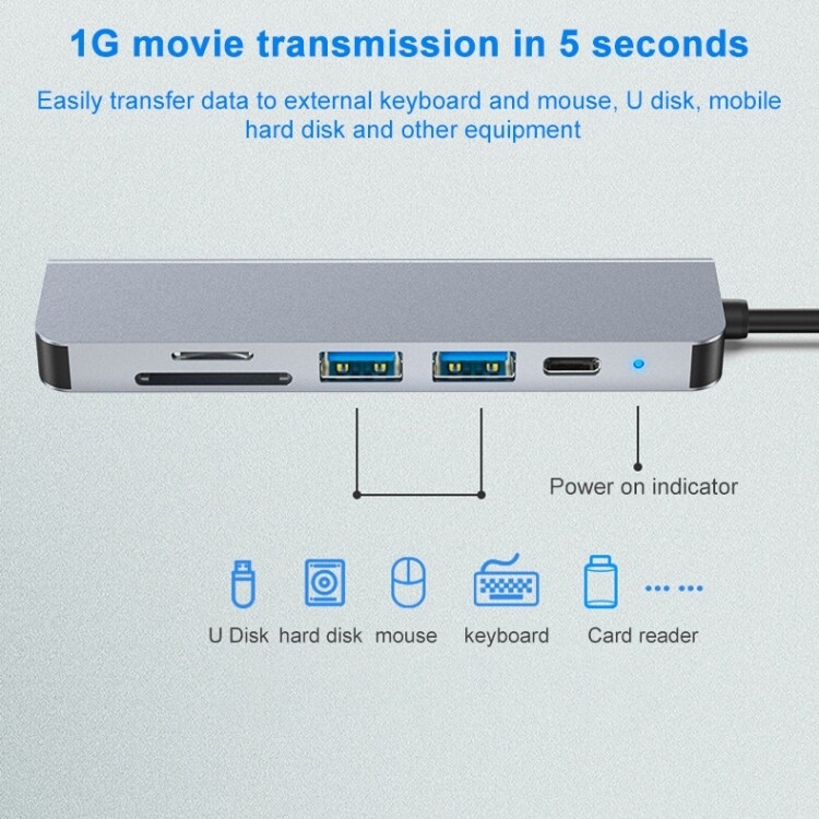 2. Prend en charge l’utilisation simultanée de 5 interfaces (slot carte TF et slot carte SD ne peuvent pas être lus en même temps)