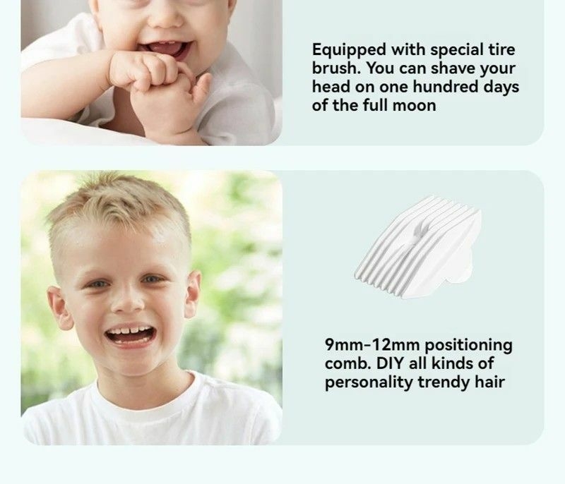 3, conception sans bruit: la tondeuse à cheveux du bébé a un bruit de travail très faible de moins de 50db.