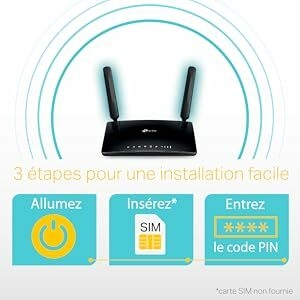 Profitez d'une connexion haut débitL'Archer MR200 offre un WiFi bi-bande, 433 Mbps en 5 GHz ou 300 Mbps en 2.4 GHz. Avec ce modem/routeur 4G, vous pouvez partager votre WiFi avec tous les membres de la famille pour connecter tous vos appareils au quotidien (tablettes, ordinateurs portables et smartphones) en simultané. | Installation très simpleTout ce que vous devez faire c'est d'allumer le modem/routeur TP-Link, insérer la carte SIM 4G, entrer le code PIN et suivre quelques étapes de paramétrage. | Emportez votre WiFi partoutL'Archer MR200 offre un confort et une polyvalence inégalés. Il permet d'établir rapidement un réseau WiFi performant et stable. C'est la solution idéale si vous êtes à la maison ou pour travailler depuis une zone où le débit ADSL est insuffisant. |