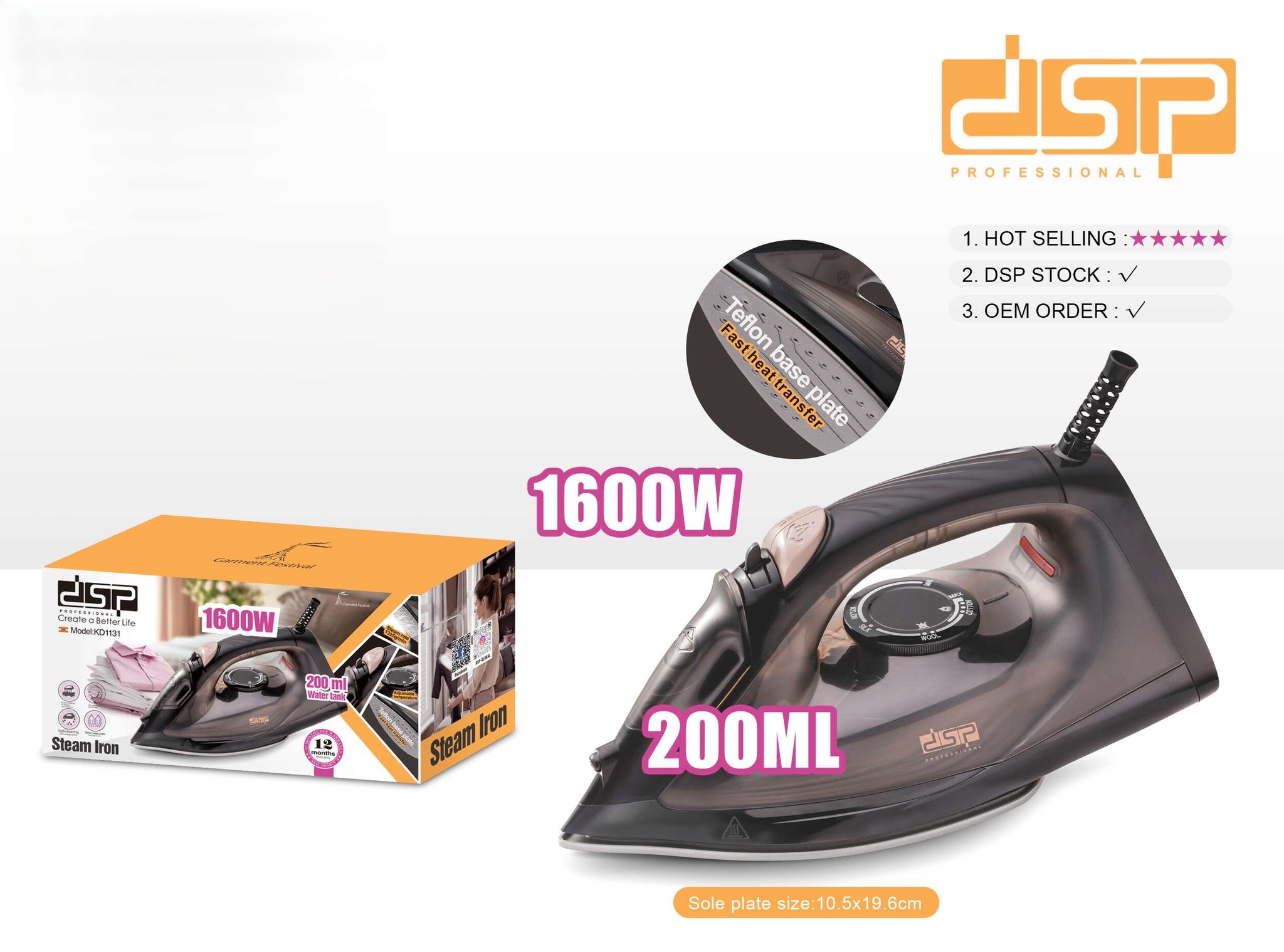 Ce fer à vapeur chauffera rapidement en 30 secondes et fournira une sortie de vapeur puissante, et un taux de vapeur élevé peut éliminer facilement les plis des vêtements et rendre vos vêtements lisses et bien pressés, montrant votre élégance.