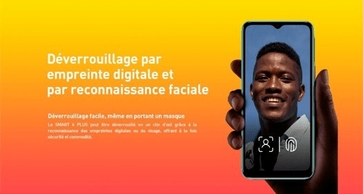 Déverrouillage facile, même en portant un masque. Le SMART 6 PLUS peut être déverrouillé en un clin d'œil grâce à la reconnaissance des empreintes digitales ou du visage, offrant à la fois sécurité et commodité.