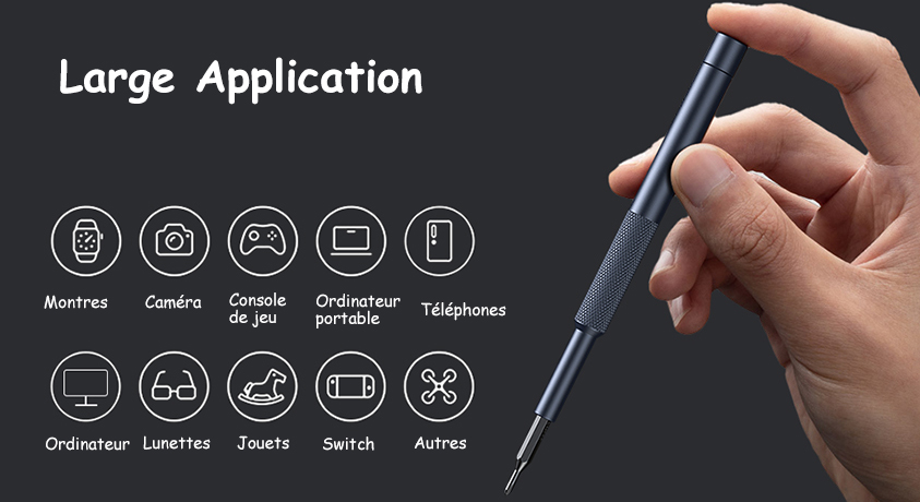 24 embouts différents (Phillips, Plat, Torx, Torx de Sécurité, Pentalobe, Hexagone)