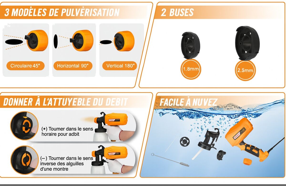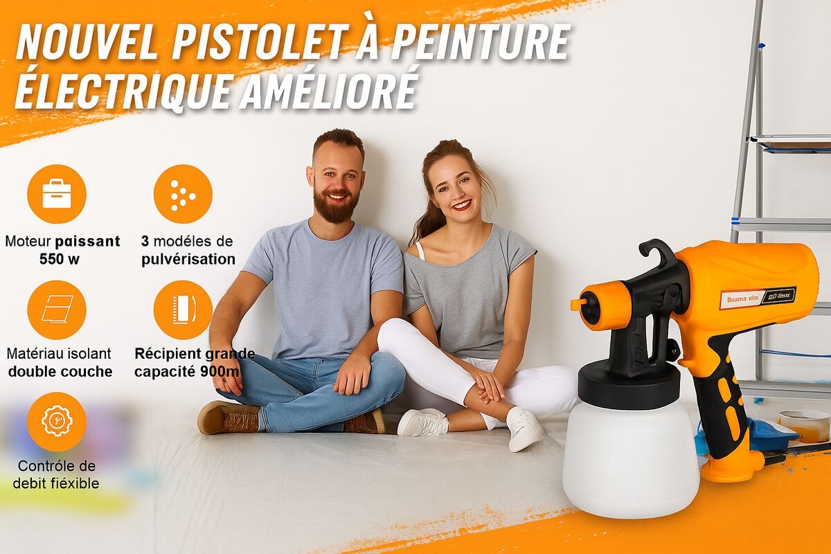 Améliorez vos projets de peinture avec ce pistolet à peinture électrique 550 W HVLP. Son moteur puissant de 550 W offre une pulvérisation fine et une couverture rapide, idéal pour murs, meubles, armoires, clôtures, portes et chaises de jardin.