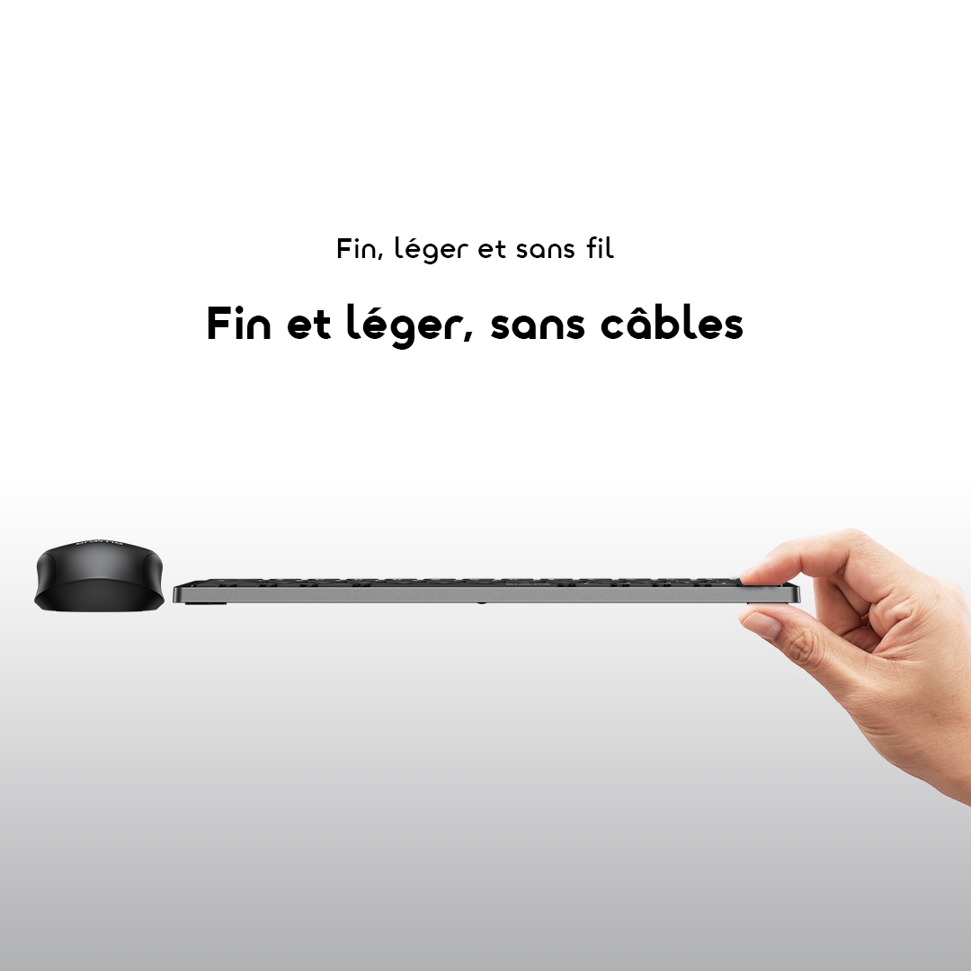 Clavier ultra-fin et souris légère avec design sans fil, créant un bureau plus propre et un espace de travail plus libre.
