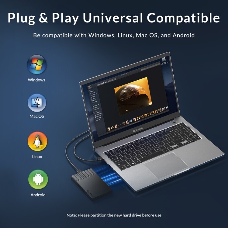 5.  Largement Application: boîtier de disque dur externe peut connecter 2,5 pouces SATA HDD/SSD à PC, ordinateur portable, smart TV, routeur intelligent, PS4, XBOX et d’autres appareils pour l’extension de stockage, sauvegarde de fichiers, récupération de données et recyclage de vieux disque dur.