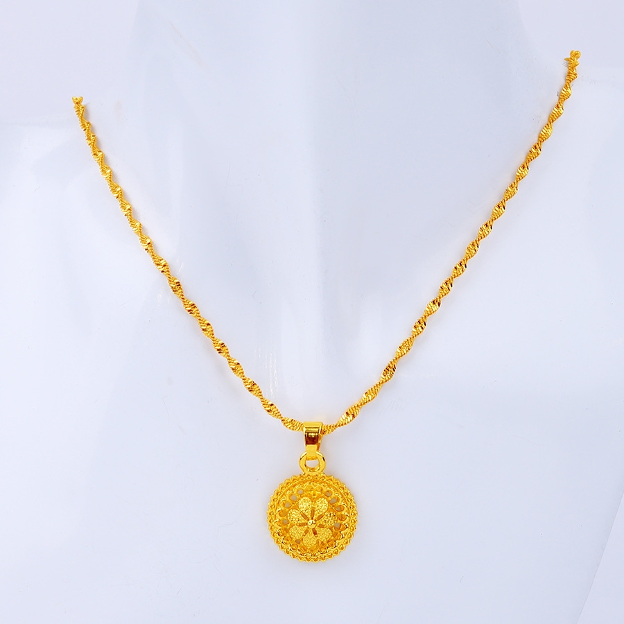 Le Collier : Une chaîne torsadée délicate rehaussée d'un pendentif solaire sculpté.